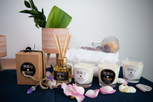Coming back to Cyprus and after getting excited in the candle making process we immediately decided to produce our own favors for our wedding, so we created around 300 pieces of soy wax scented candles, decorated by ourselves. It was until after the wedding when we received a lot of positive feedback about our candles as well as inquiries whether we could produce candles for other events as well, that we realized that we can actually build a business by doing what we love the most! So we slowly started our own Social Media to sell & advertise our Candles! This was the time where ”Spread the L” was born with the idea of spreading all the positive L’s around the world, Light, Love, Laughter etc.